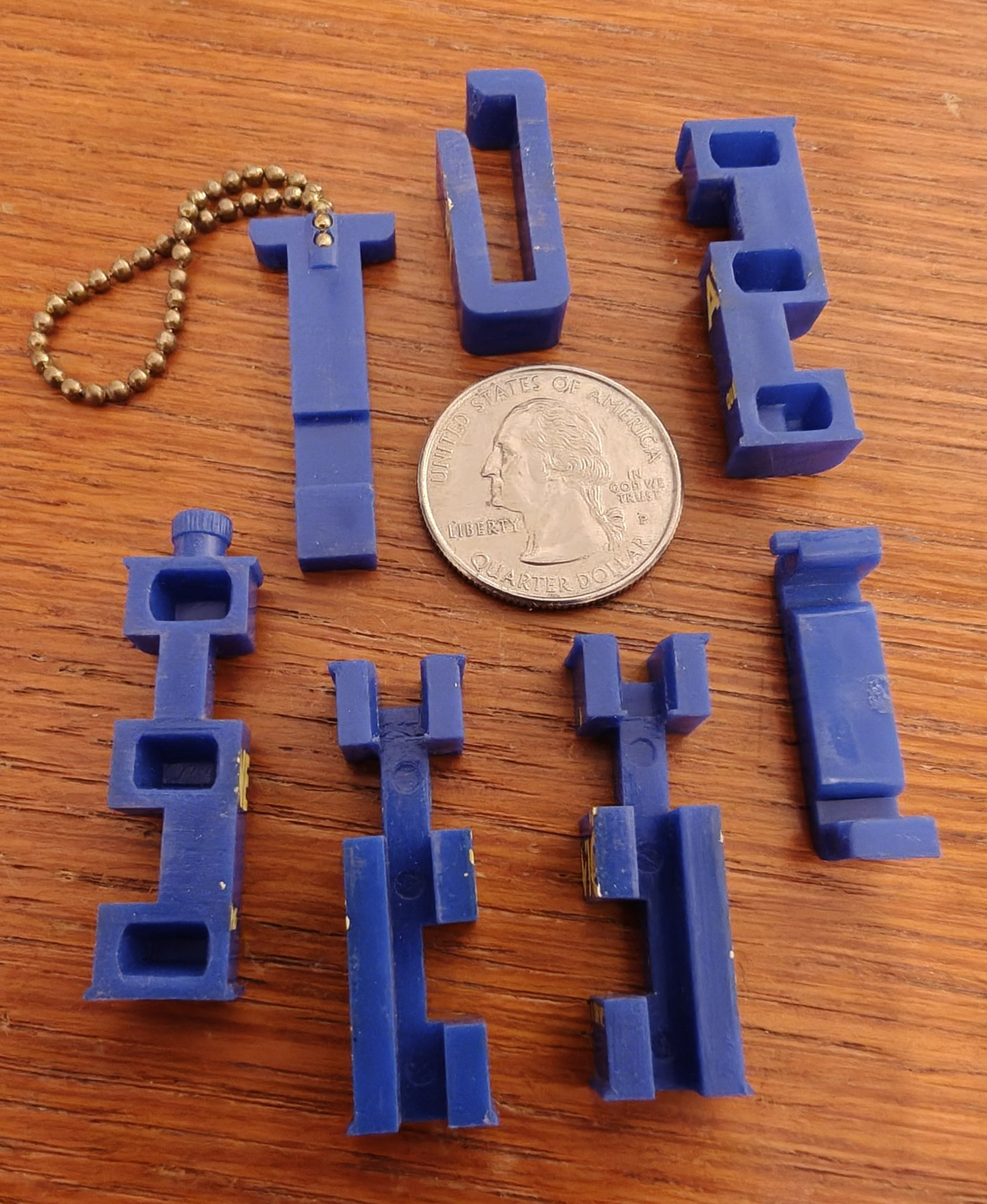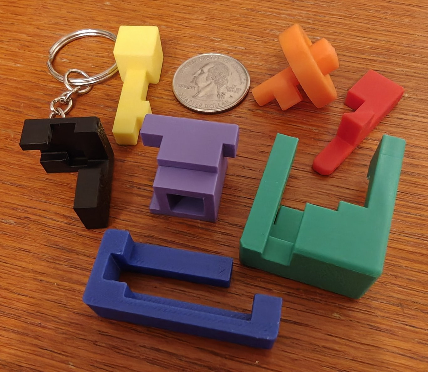 Here is a set of eight colorful keychain puzzles, obtained in 2018 from China.